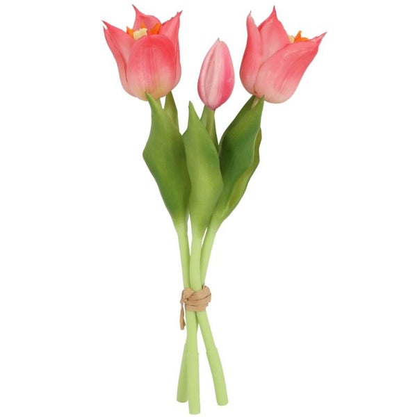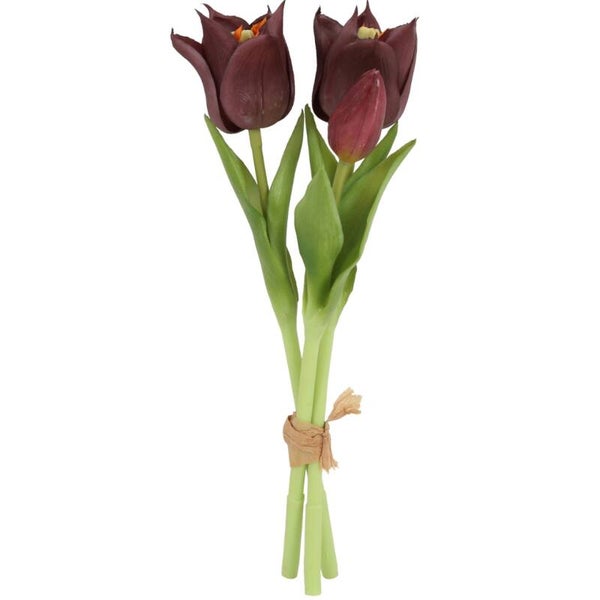 Decoratief kunstboeket met realistische tulpen ven ze zijn 30 cm hoog. Dit boeket heeft een natuurlijke uitstraling en blijft langdurig mooi zonder onderhoud. Perfect als blijvende decoratie in vaas of bloemstuk, geschikt voor elk interieur.